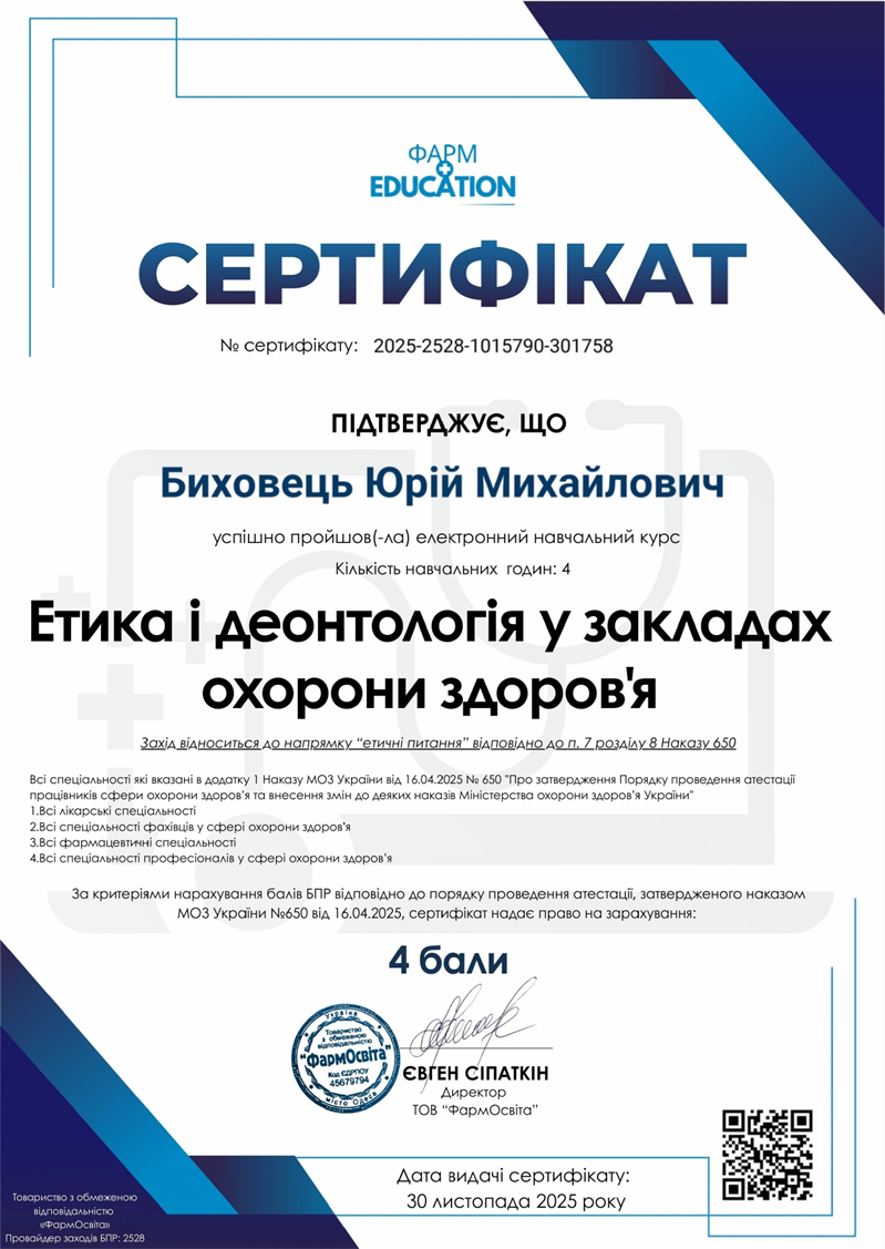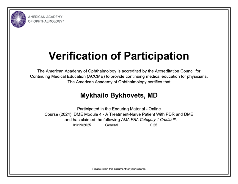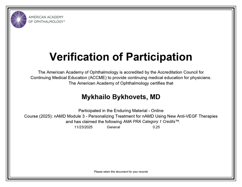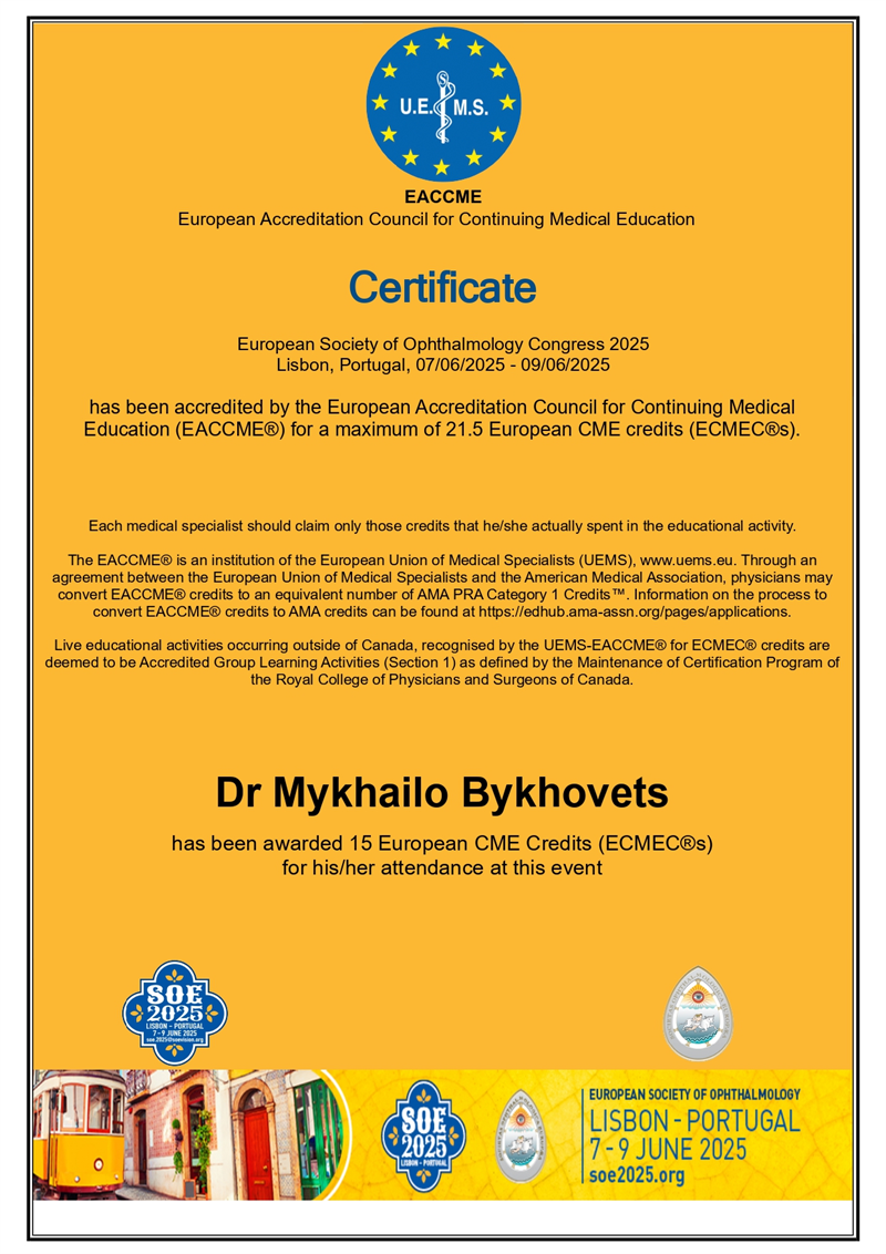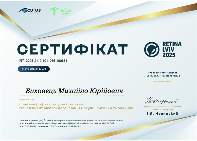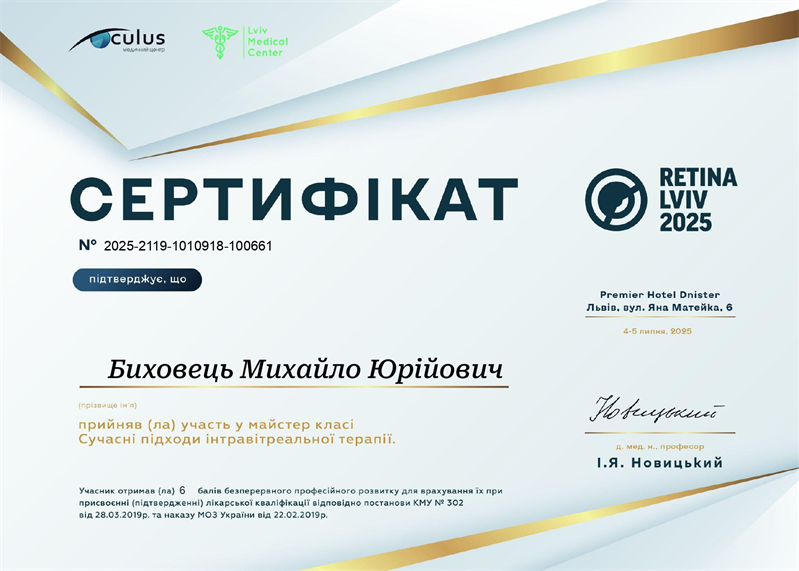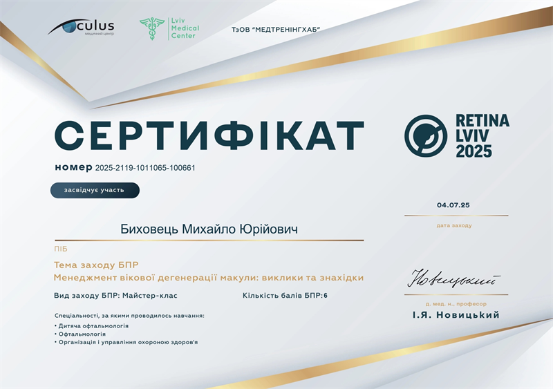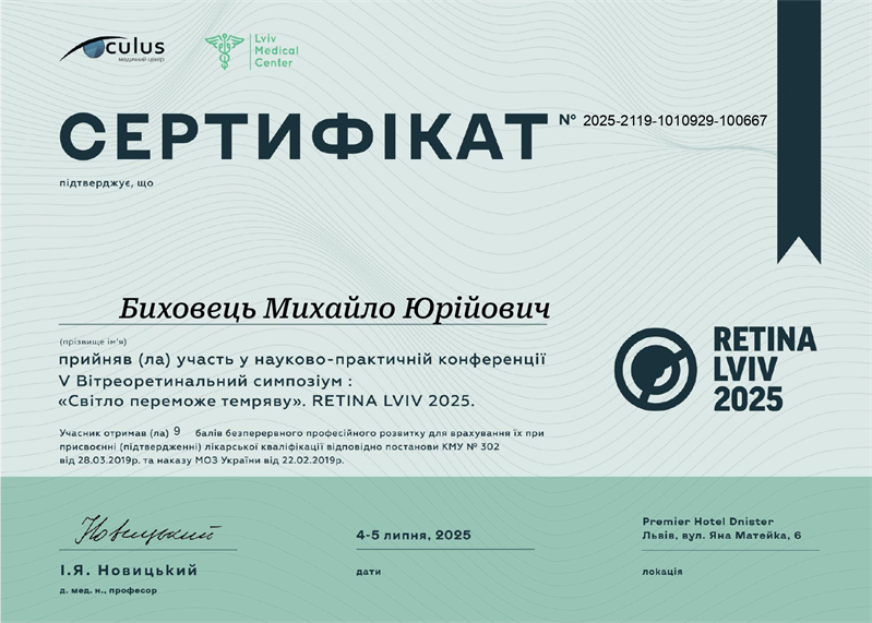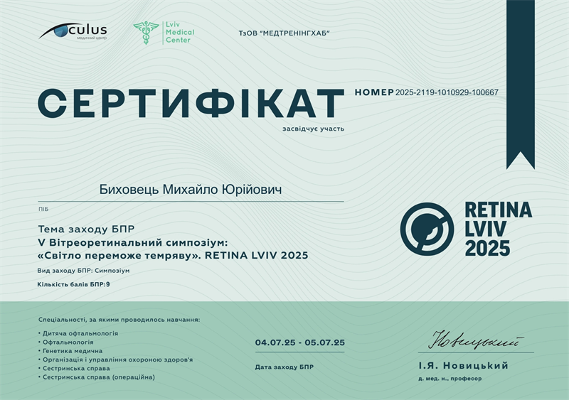Спеціалізація: Офтальмологія, Мікрохірургія ока